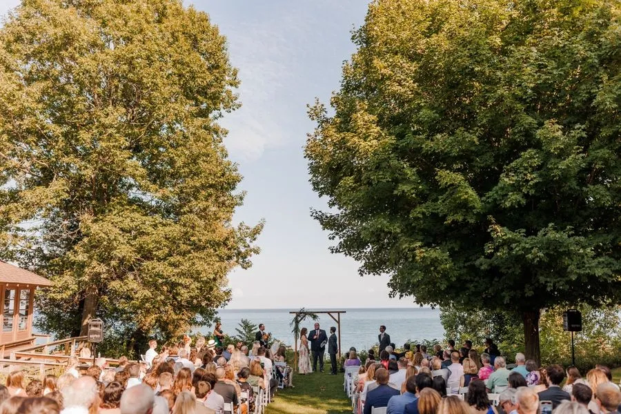 Camp Cavell offers a truly picturesque setting for your wedding. Exchange vows against the breathtaking backdrop of Lake Huron or within the serene wooded areas throughout camp. Our large covered pavilion ensures you can celebrate outdoors while staying protected from inclement weather.