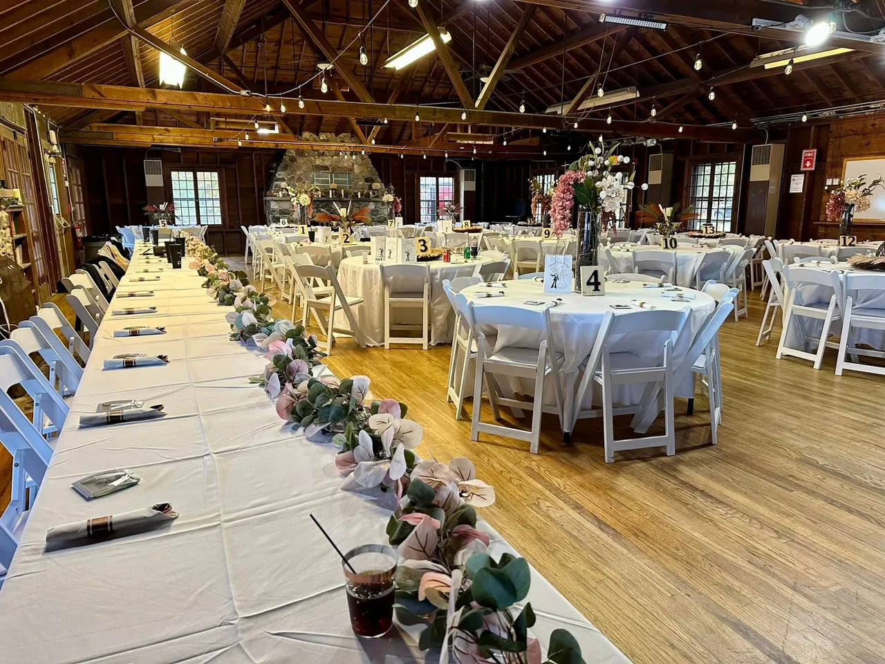 For receptions and ceremonies, our charming lodge and dining hall provide an intimate atmosphere that comfortably accommodates up to 225 guests. All of our facilities, including the beach, are wheelchair accessible.