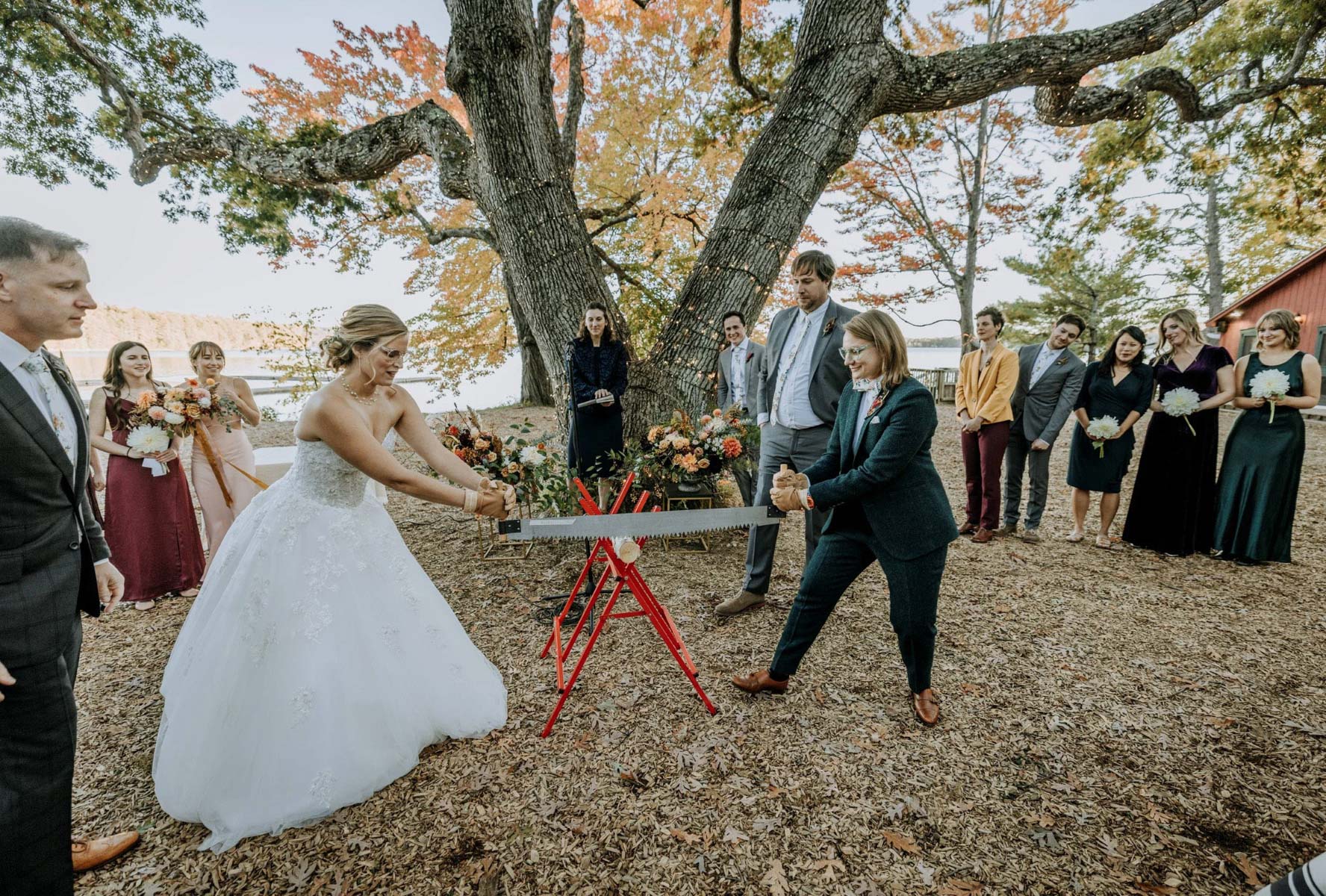Kingsley Pines is a beautiful, private, lakeside venue which allows you to create your custom wedding. We have space for all of your guests to stay onsite in our cottages and cabins, and multiple buildings for groups of all sizes. We welcome only one group at a time and availability is limited. With space for up to 200 overnight guests, customizable vendor options, and activities like kayaking, tennis, and bonfires, Kingsley Pines transforms a wedding into an unforgettable camp-style getaway.